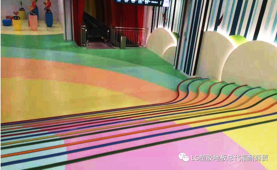 (E)边缘处理和踢脚线(上墙) 为了卫生、防水及保养方便,地板也可当作踢脚线直接上墙。一般上墙高度10-20 cm,通常在欧洲医疗机构场合,必须采用直接上墙方法,为了施工效果,地板直接上墙后最好采用密封胶封堵上口。 (F)滚压 地板铺设后在胶水完全干透前(30分钟内)使用50kg或75kg钢制滚轮,在地板上来回滚压以达到: 1消除气泡 2使地板与基层完全粘接 3防止地板翘边