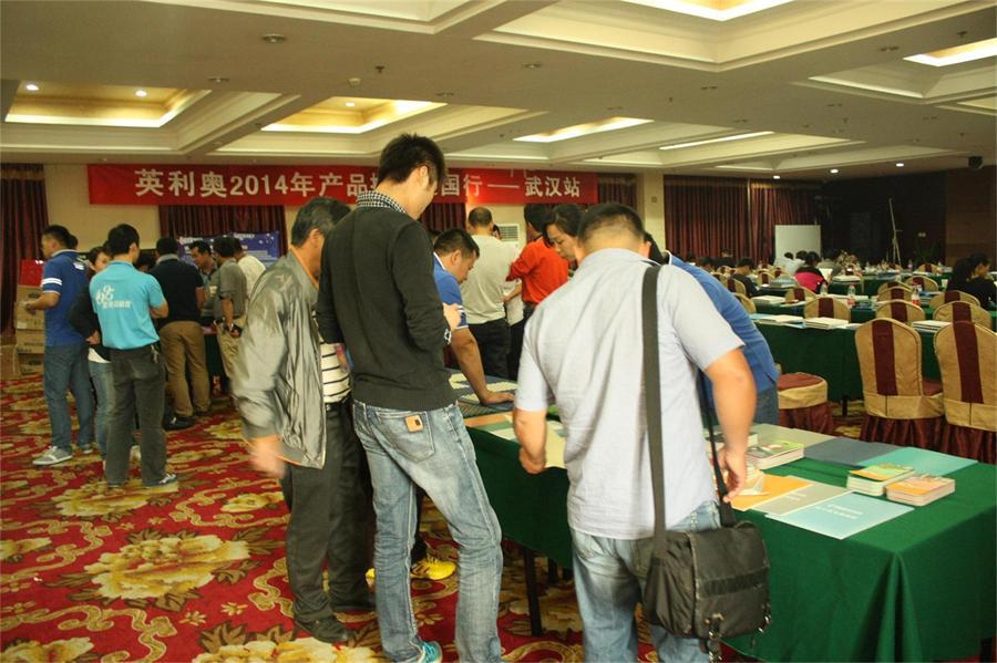 2014年5月12日下午2点,英利奥2014年产品推介全国行——武汉站会议,在武汉市世纪花园大酒店圆满落幕。英利奥总经理杨伟霞,营销总监陈文召,营销经理郝立辉、朱建功,营销副经理王红斌、许昭、冯明磊,以及湖北湖南区域经理陈红泉、袁立魏和来自湖北湖南区域的英利奥客户百余人出席了本次会议。同时武汉联冠体育设施有限公司赵兵经理,武汉大众体育设施有限公司张咸林经理、武汉禧悦运动高丽娟经理以及众多英利奥合作伙伴及同行材料商纷纷参加,大家相聚一堂共话情谊,感受英利奥企业风采及全面开展英利奥产品知识培训。