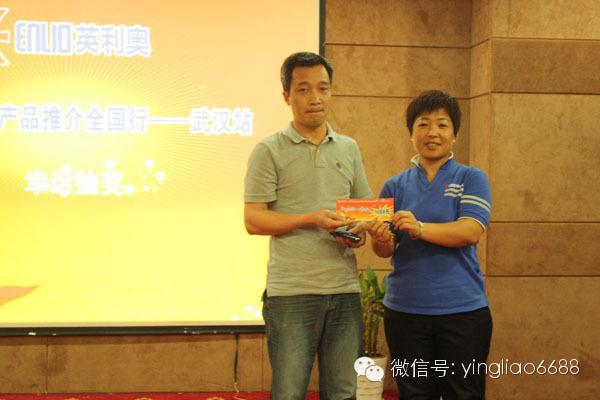 会议最后阶段的幸运抽奖环节,英利奥总经理杨伟霞、营销总监陈文召、湖北区域市场经理陈红泉为获得一等奖、二等奖、三等奖的获奖客户颁奖,分别将价值1088元、588元、388元的英利奥产品代金券奖品颁给他们,为他们送去幸运,送去欢乐。