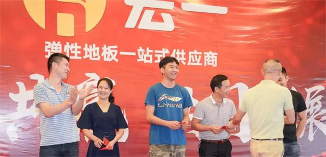 ![]() 导读:厦门宏一塑胶地板在2019年旺季来临之际,为答谢广大客户多年来的支持与合作,为各位客户未来的合作与发展达成共赢,宏一塑胶地板特在美丽的盛之乡温泉度假村举办了“合作共赢、共谋发展”为主题的豪华答谢晚宴。弹性地板分会马金秘书长作为行业领导,受邀参加了此次活动,并对宏一塑胶地板的新产品表示了肯定,对宏一过往业绩以及未来发展给与了建议及祝福: ![]()