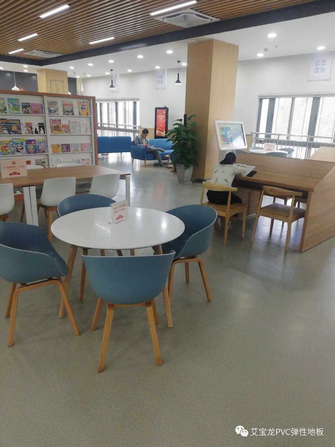 东莞大岭山图书馆, 地面采用Gerflor洁福品牌野心系列PVC地板, 野心系列是一种 经过加压处理、无方向性花型设计的 同质透心卷装地板。