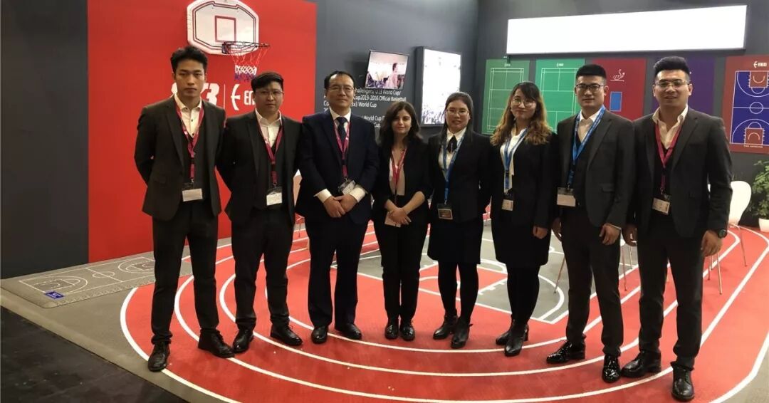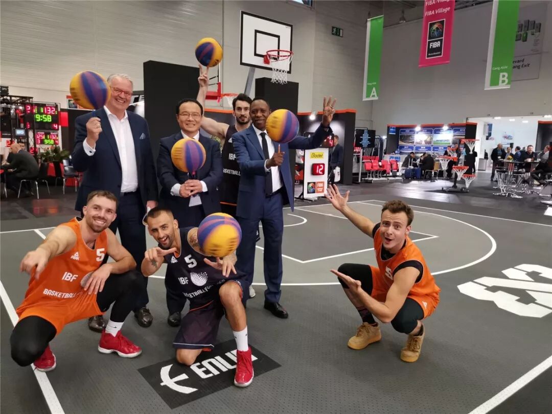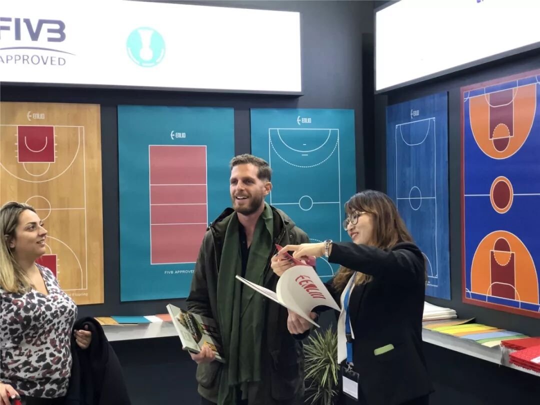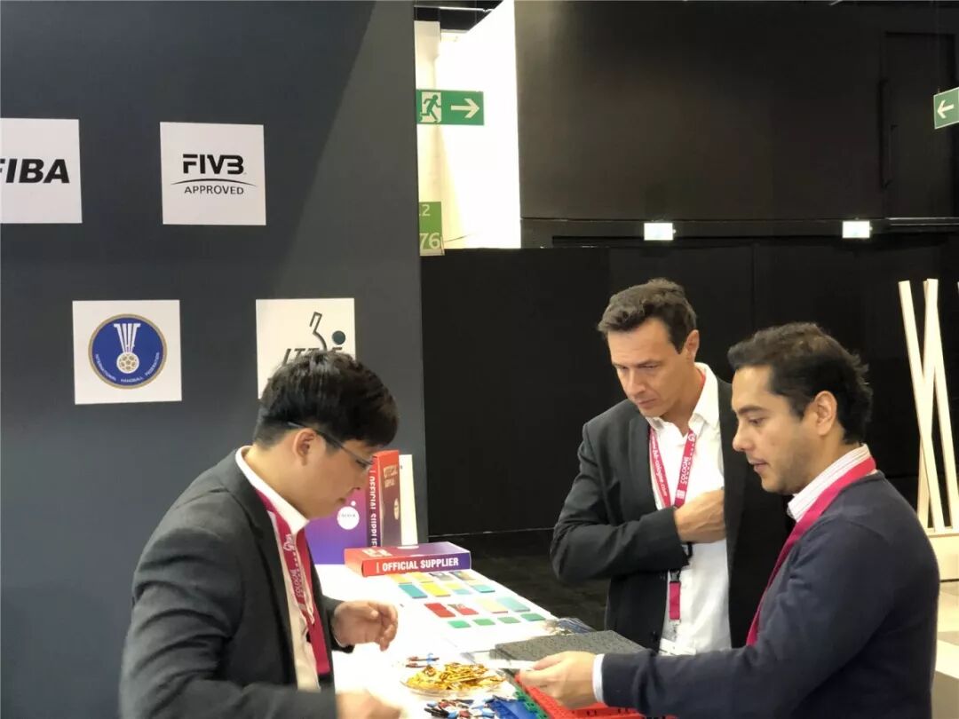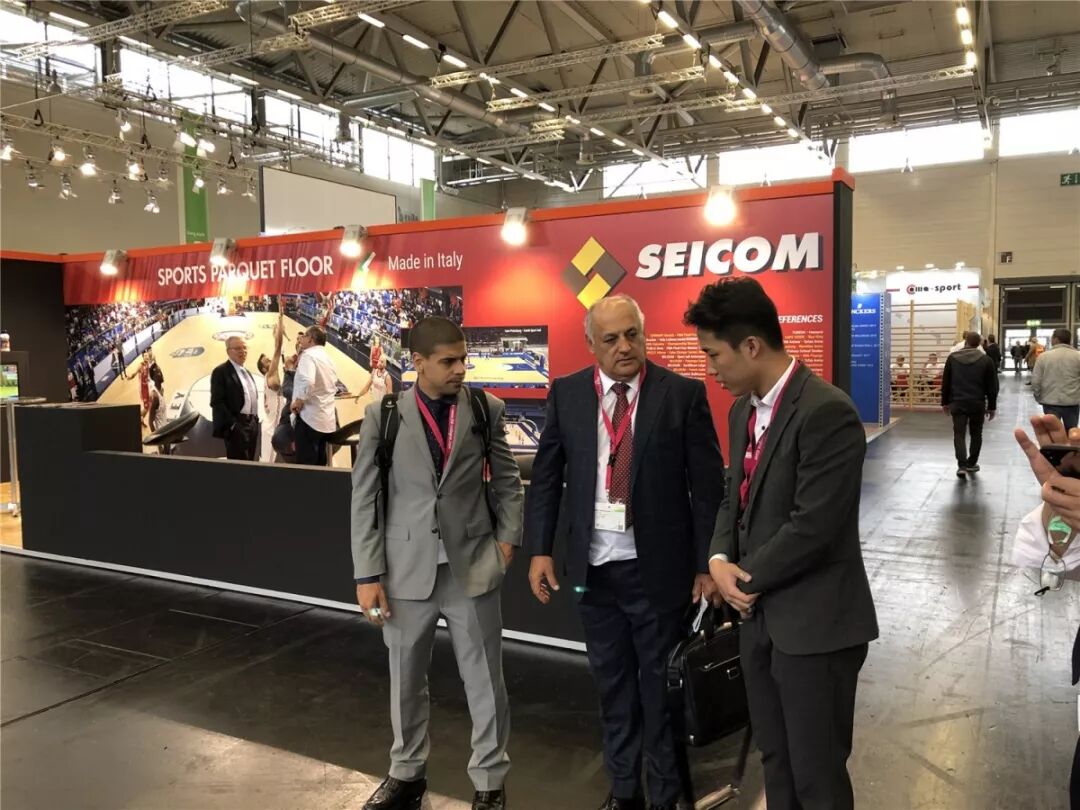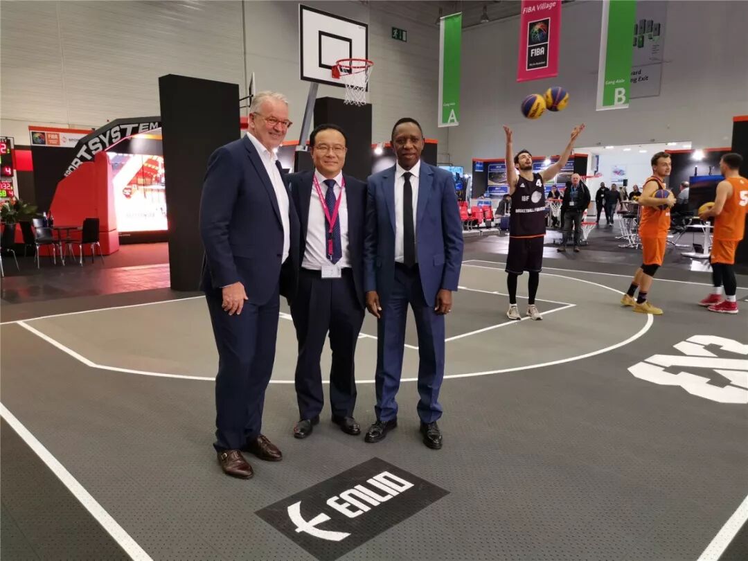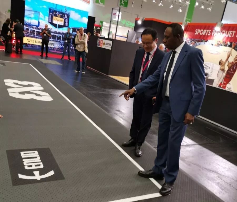 国际篮联主席尼昂先生、国际篮球基金会弗洛瑞恩先生在科隆体育展期间莅临英利奥于国际篮联联合村(FIBA Village)展位参观指导并进行了炫酷篮球秀,英利奥董事长李郁热情接待并对SES地板作详细解答。