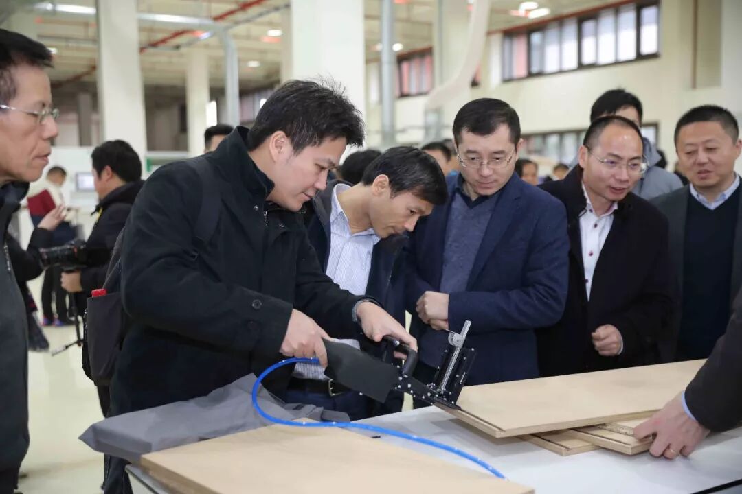 活动的最后环节,威林格团队带领大家进入到激动人心的支持中心内,向观众们进行锁扣家具的现场生产、安装演示。 眼见为实,让大家亲历开料、封边、双端铣开槽以及 CNC 加工中心的加工生产等进行示范生产,让观众们得以在实际的生产环境中, 实地考察观摩如何实现锁扣家具的工业化生产,无不对 Threespine 锁扣家具技术安装的快捷、简便性称奇。除此以外,现场还进行了Liteback芯材减重技术的生产演示,塑料地板既能变得更加轻巧,同时还能达到环保, 提高原材料利用率,。
