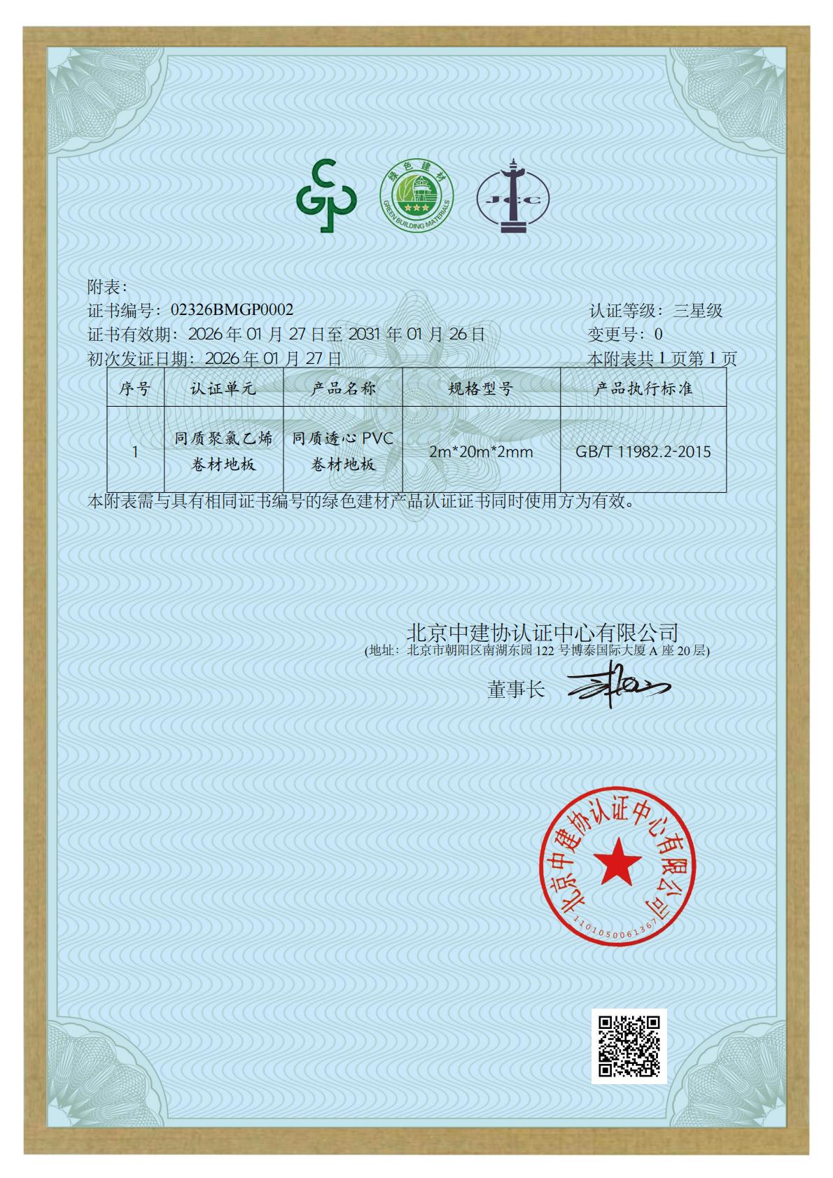 恭喜江苏丰树新材料科技股份有限公司获得同质聚氯乙烯卷材地板的最高三星级绿色建材产品认证。该认证的颁发,表示江苏丰树新材料科技股份有限公司此次申报产品符合绿色建材的要求和标准,具有环保、可持续发展等特点。此证将进一步证明丰树的产品在环保方面的优势和可靠性,为消费者提供更加可靠和环保的选择。