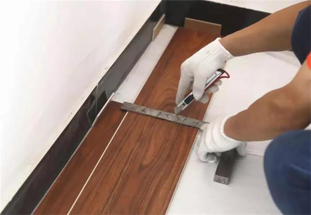 4) 注意安装过程中, 安装第一排最后一块时,需要先拿地板量下剩余部分,地板需要反过来测量。房间门框等异形处理须细致小心,先标记后裁切。