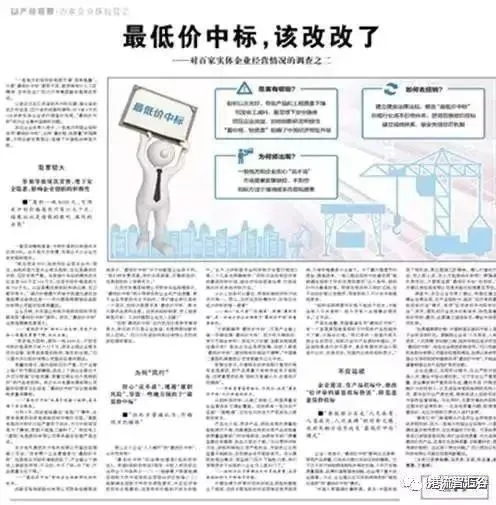 《人民日报》发文《质量应是企业立身之本(一线视角)》,首次诟病最低价中标。