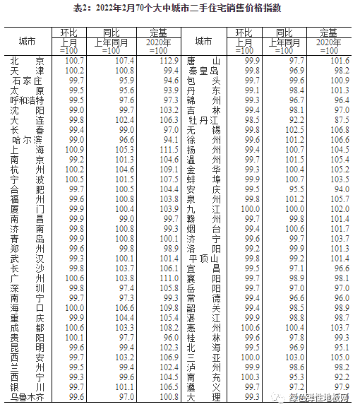 (图源:国家统计局,央广网发) 易居研究院智库中心研究总监严跃进分析称,从2月份一二三线城市的房价环比涨幅数据看,三四线城市出现了71个月以来首次房价同比下跌,说明市场存在疲软和下行的地方。各地三四线城市需要加快救市和稳楼市,防范数据过快下跌。近期湖北孝感,积极出台契税补贴、公积金贷款放松、学区政策放松等,都有助于激活市场交易和促进市场健康发展。 同时,58安居客房产研究院分院院长张波认为,从房价变化可以看出,市场降温态势得到了有效控制,房地产交易市场正迎来触底回升。此外,房价的企稳和市场热度的提升有着直接关联,虽然2月正值春节,市场的交易受到一定影响,但从2月的下半月开始,部分城市的市场就开始出现热度回升,其中一线城市表现更为明显,从安居客的线上数据也可印证,2022年2月全国找房热度有明显环比上涨36.6%,其中一线城市找房热度环比上涨43.6%。 一线城市二手房表现“略强势”,二手房下行的压力较大 数据还显示,一线城市二手住宅环比上涨0.5%,涨幅比上月扩大0.4个百分点;同比上涨3.5%,涨幅比上月回落0.6个百分点;二线城市二手住宅环比下降0.3%,降幅比上月扩大0.1个百分点,同比上涨0.3%;三线城市二手住宅环比下降0.4%,降幅与上月相同,同比下降1.3%,降幅比上月扩大0.6个百分点。
