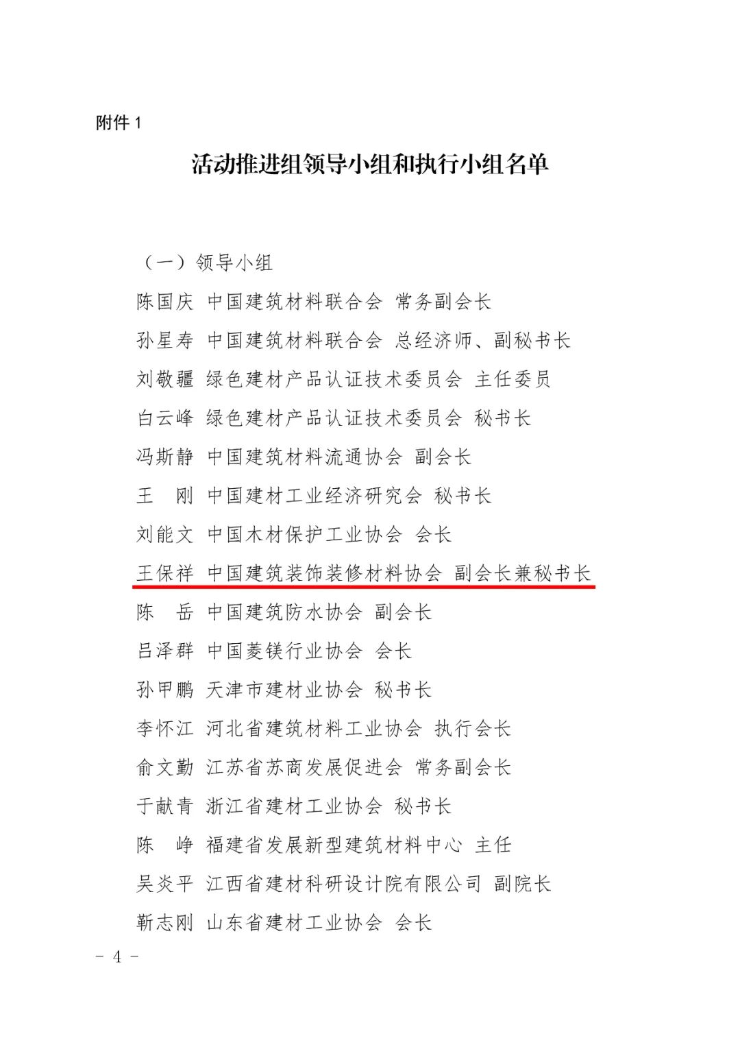在活动推进组中,中国建筑装饰装修材料协会将作为成员单位参与其中,并共同承担推进活动的责任和任务。通过这些努力,旨在促进绿色建材下乡的推广应用,提高绿色建材的环境友好性和可持续发展水平。