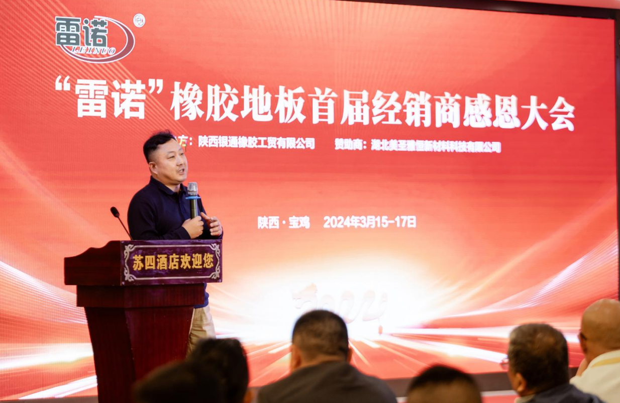 2024年3月15-17日,以“感恩有您 共赢未来”为主题的雷诺橡胶地板首届全国经销商感恩大会在古老的陈仓大地宝鸡市隆重举办。中国建筑装饰装修材料协会弹性地板分会秘书长马金应邀出席了本次会议,和来自全国几百名经销商、辅料商、施工方、设计方和供应商等合作伙伴相聚一堂,共谋发展、共创共赢。