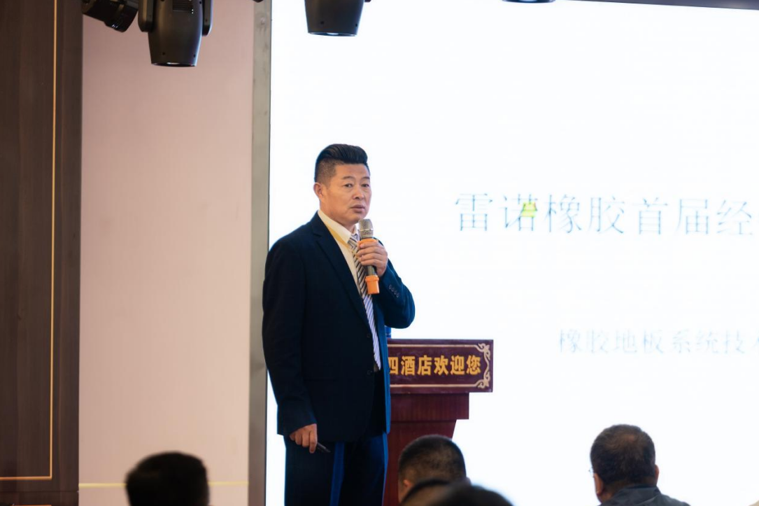 雷诺橡胶地板董事长陈维江首先致欢迎词。他说:首先十分感谢不远千里相赴的朋友们,能迎接到你们是我的荣幸!回首2007年11月成立了雷诺橡胶地板的前身“西安雷诺橡塑地板有限公司”以来这十多年的创业历程和品牌成长之路,都是雷诺人不懈努力和奋斗的结果,也离不开协会领导、辅料厂商、供应商、特别是广大经销商等合作伙伴的鼎立支持和努力。感谢大家十年如一日支持雷诺、不离不弃的陪伴雷诺发展壮大。雷诺将以更优质的产品、更卓越的品牌、更贴心的服务回馈给大家,未来相互支持、相互成就和大家共赢未来!