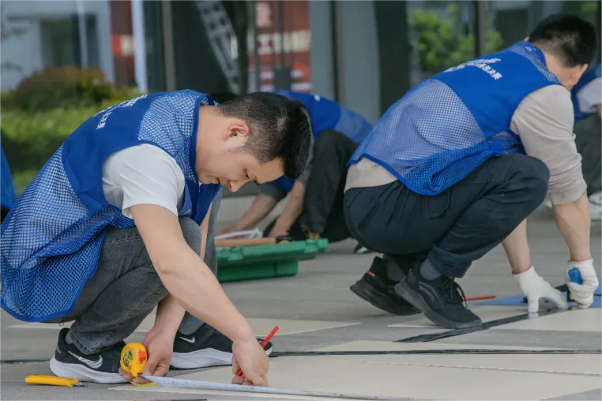 本场比赛由分赛区选出的60名优秀选手参加,他们来自弹性地板生产企业及装饰装修企业的地板铺装队伍及行业优秀的施工团队,经过笔试及实操考试(卷材铺装、片材铺装),他们用自己的精湛技艺诠释了工匠精神的内涵,取得了不俗的成绩。评分由裁判长由罗威主任主持,大赛最终产生了本赛季的冠亚季军。