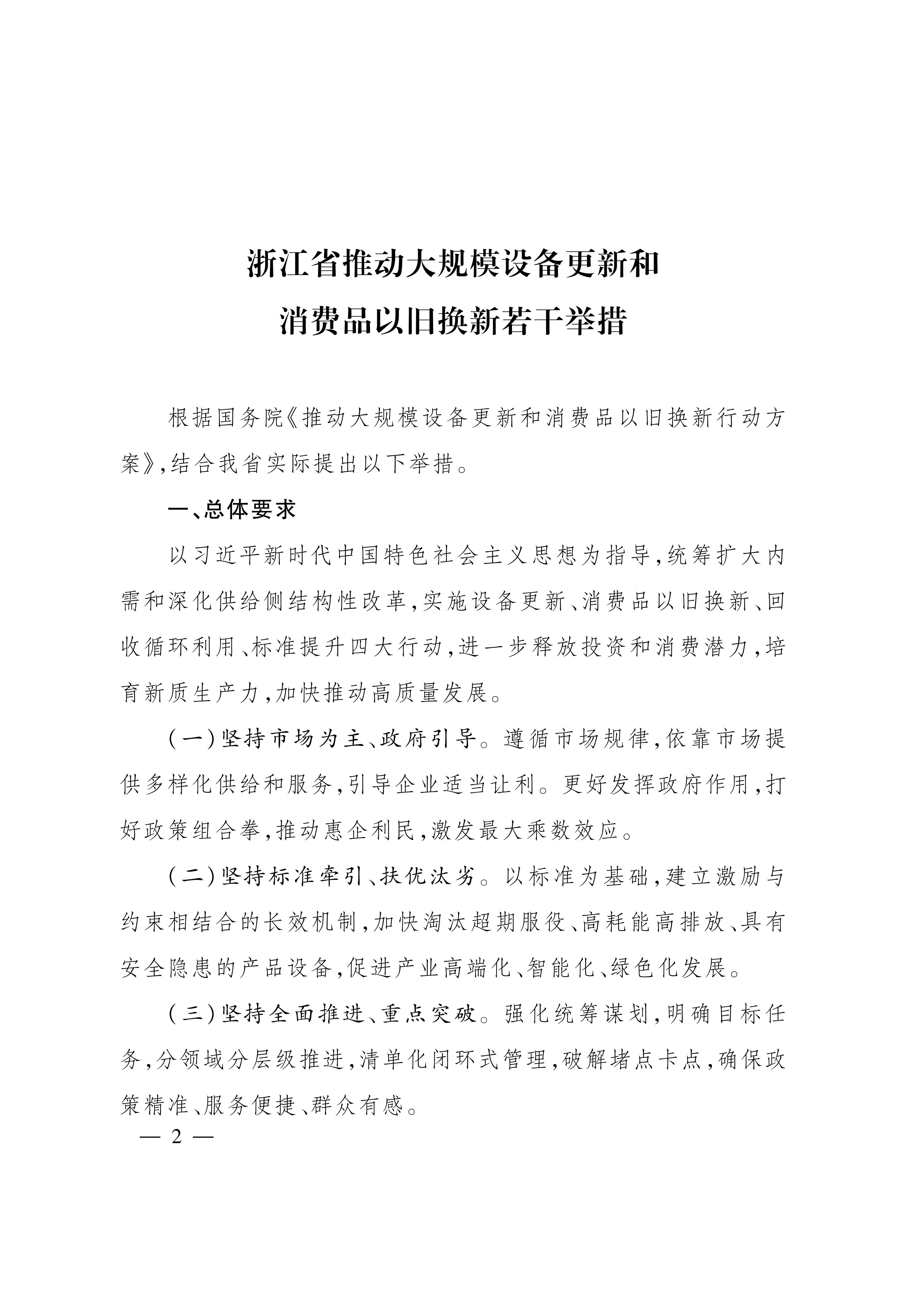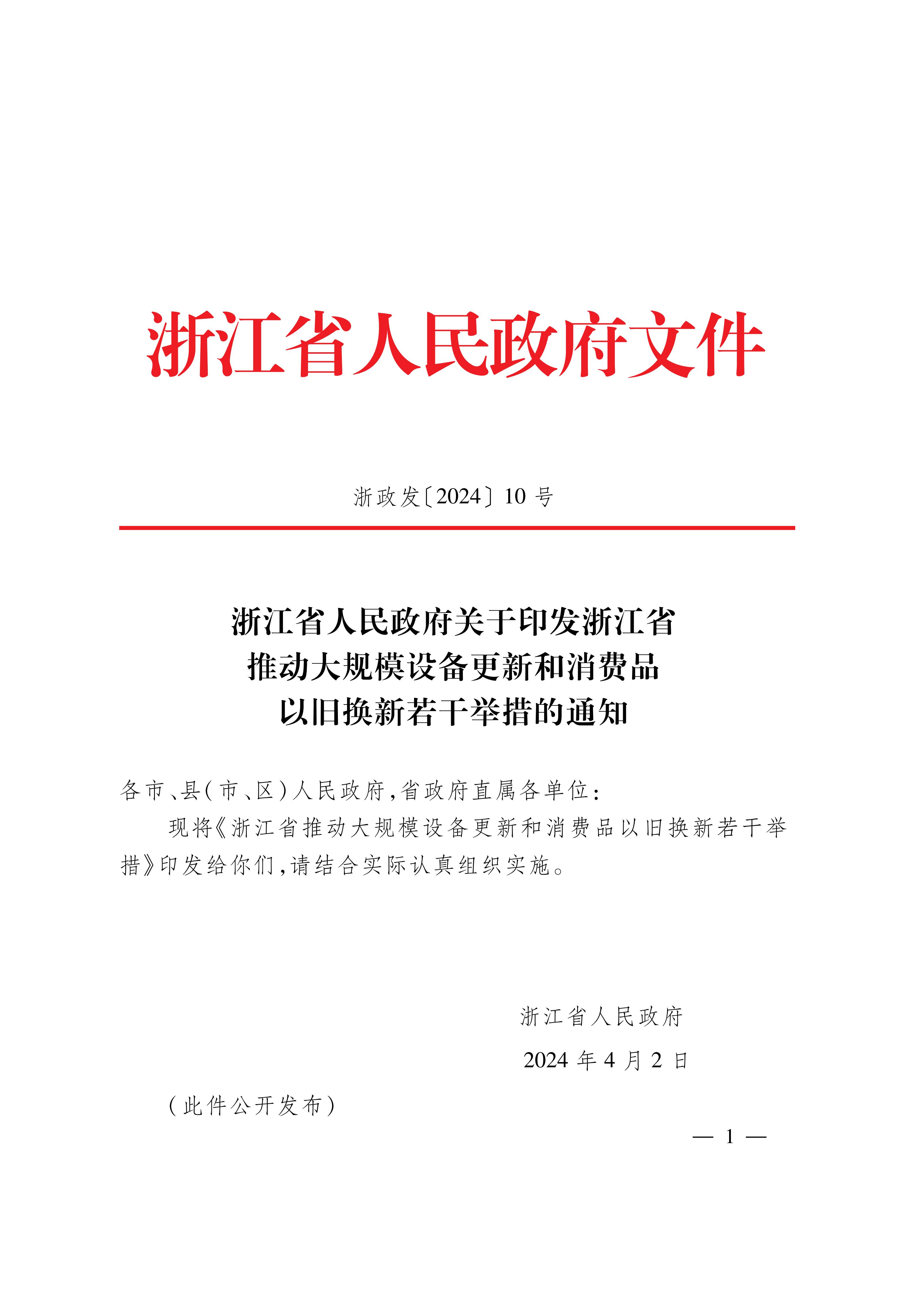 浙江省人民政府关于印发浙江省推动大规模设备更新和消费品以旧换新若干举措的通知