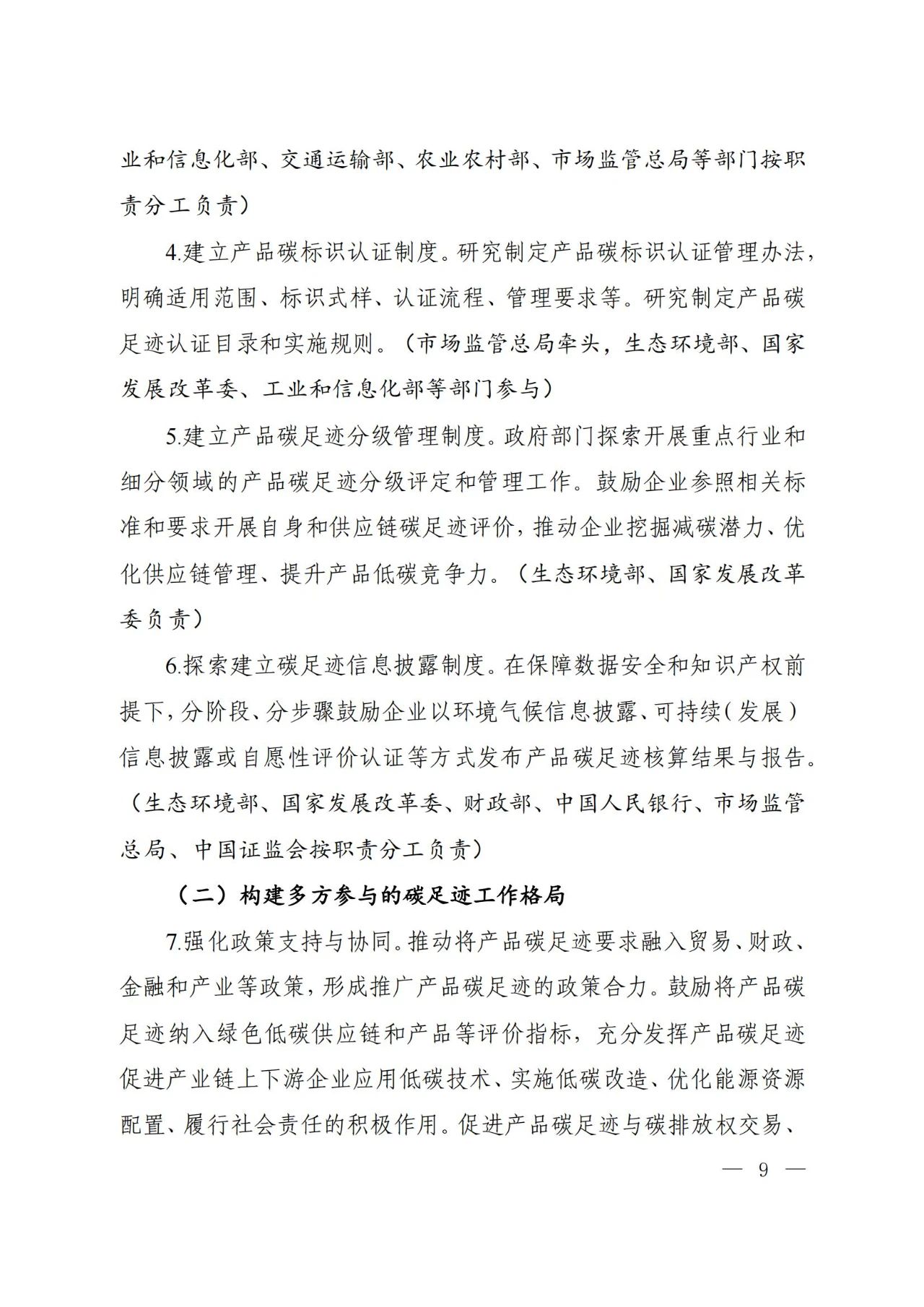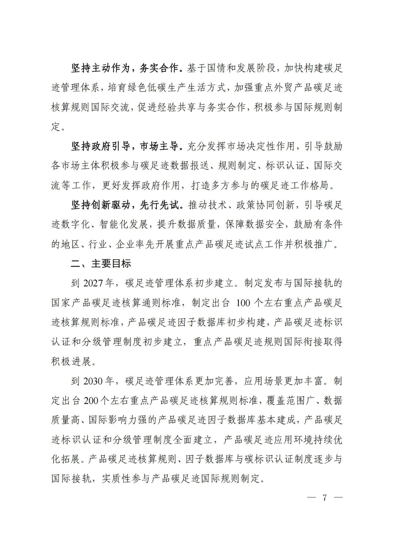 《方案》提出,到2027年,碳足迹管理体系初步建立。制定发布与国际接轨的国家产品碳足迹核算通则标准,制定出台100个左右重点产品碳足迹核算规则标准,产品碳足迹因子数据库初步构建,产品碳足迹标识认证和分级管理制度初步建立,重点产品碳足迹规则国际衔接取得积极进展。到2030年,碳足迹管理体系更加完善,应用场景更加丰富。 |