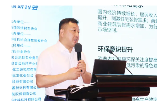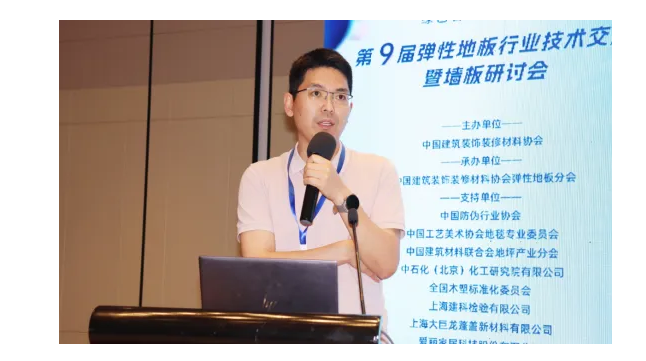 中国建筑装饰装修材料协会弹性地板分会会长单位代表、上海大巨龙蓬盖新材料有限公司总经理李鑫代表协会致辞,为行业可持续发展呼吁企业要保障产品质量,为优质企业创造公平的竞争环境,避免“劣币驱逐良币”、以次充好的现象发生。协会将优先推荐获得绿色建材认证的产品,鼓励企业要加大创新和研发投入力度,借助“一带一路”倡议等机遇,加强与沿线国家和地区的合作,拓展海外市场,提升我国弹性地板在全球市场的份额和影响力。