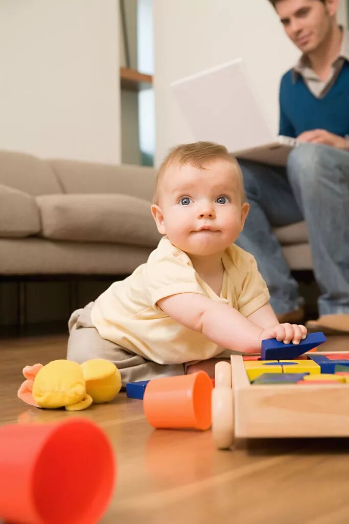 当坐龄宝宝完全无须外界支持, 可以用手臂撑住自己坐起时, 在好奇心的驱使下, 会开始探过身子去捡玩具, 向前、向后,运动双手和膝盖, 尝试进行爬行!