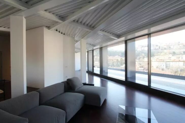 纯白色的弹性地板,毫不花哨,与黑色的家具搭配形成层次上的明暗对比,达到以简胜繁的效果。