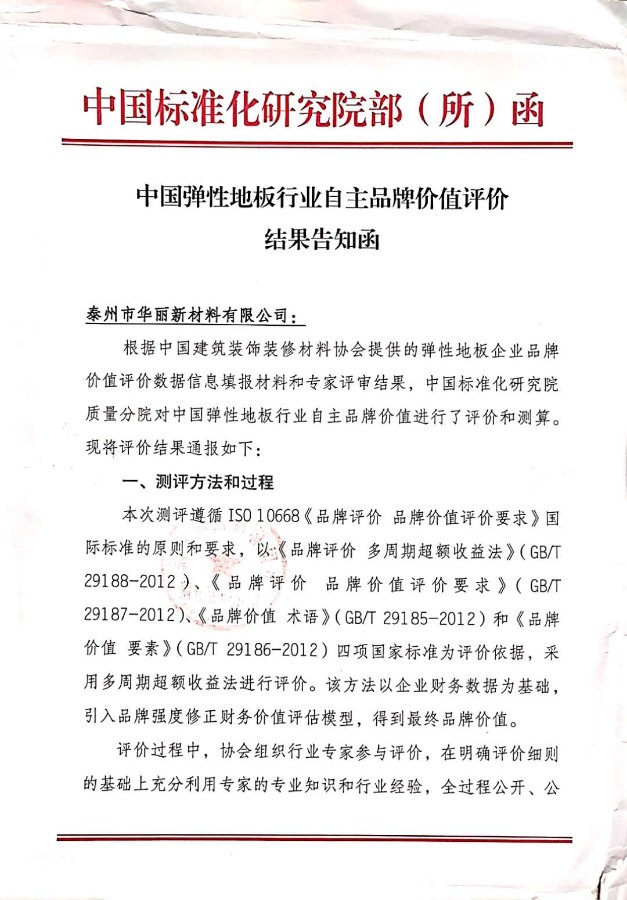 企业先后获得“省高新技术企业”、“省工程技术中心”、“泰州市工业50强”“泰州市外贸10强”等荣誉称号,企业产品获得“江苏省著名商标”“江苏省名牌”,并通过ISO9001质量体系认证,ISO14001环境管理认证和国际CE等认证。董事长袁华寿荣获“江苏省劳动模范”、市“优秀企业家”等荣誉称号。公司先后与南京航空大学、江苏省建科院、济南大学等高等院所开展产学研合作,自主研制新产品,开发新技术,进一步提升企业的创新能力,提升企业的知名度和美誉度,让企业在国际同行业竞争中站稳脚跟、争先越位。 公司生产的PVC地板又分为SPC、WPC以及LVT三种类型。
