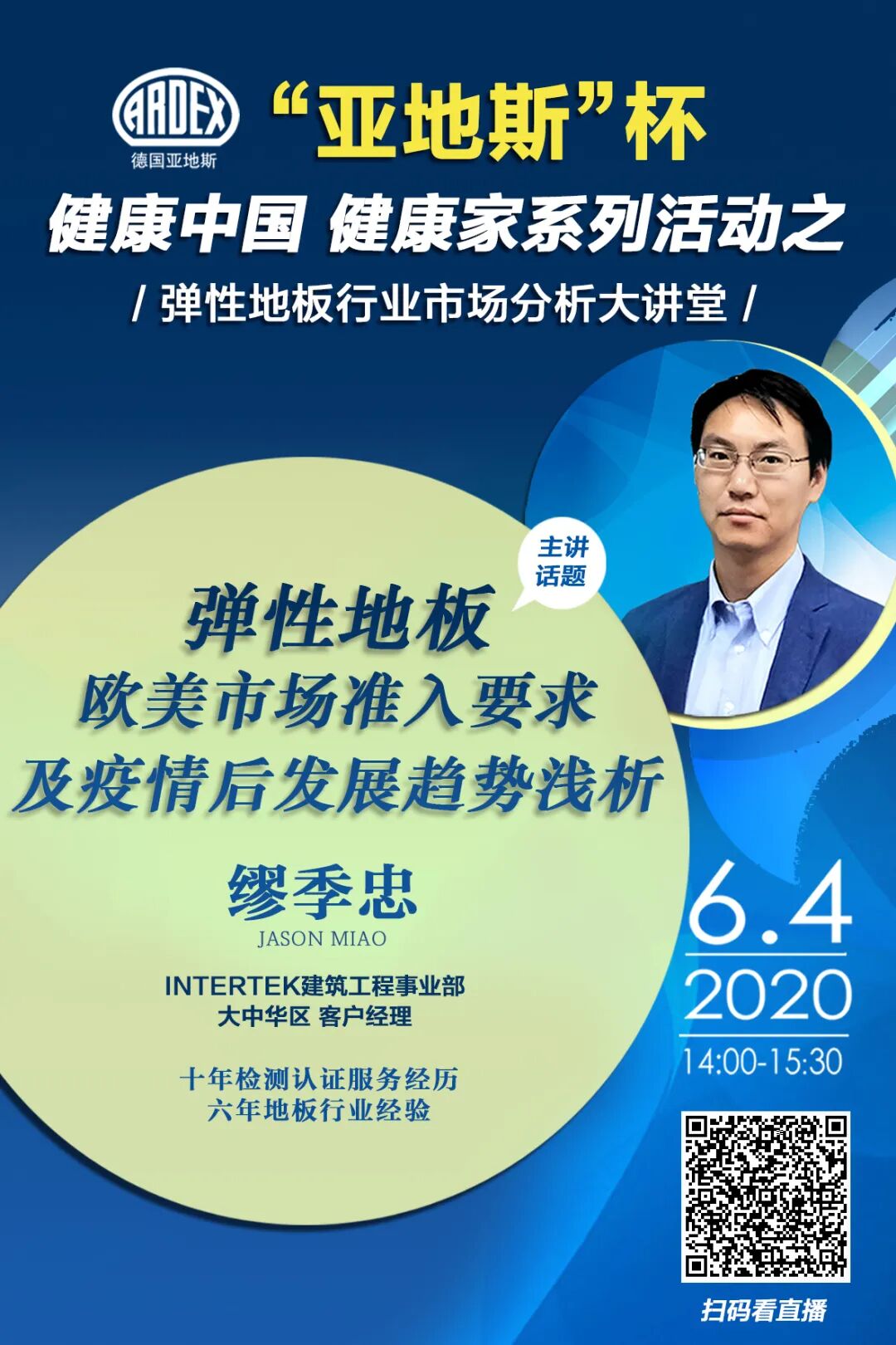2020年冠状病毒肺炎疫情的发生,无论是生活还是工作都受到很大的影响和改变,针对疫情过后的弹性地板行业市场来说是危?还是机?让我们共同探讨疫情后的弹性地板欧美市场准入要求以及发展趋势?让我们听听专家怎么说。 本期话题:弹性地板欧美市场准入要求及疫情后发展趋势浅析 主讲嘉宾:Intertek建筑工程事业部大中华区 客户经理 缪季忠 直播时间:6月4日 14:00-15:30