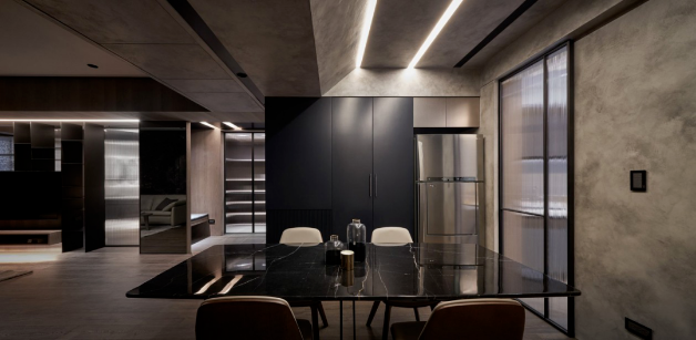 在此案例中,白色间或点缀着同样哑光的黑色家私,成为贯穿整个房子的着色基调,像极了徽派的墨色,但整体的感受却极其奢华又现代。这样的屋主一定气质卓而不俗。 ·日式现代感,内敛冷峻风· 日式崇尚的现代西式家居很冷峻,很严肃,整体上简约又不减日式中规中矩式的元素,对室内空间设计上采用几何以及棱角感十足,这在动漫题材对日本男性的脸部刻画上如出一辙,使其符合居住者的冷峻气质。 弹性地板和墙板可充分被穿插在居室各个角落,立体感充斥着整个空间,落地的玻璃窗与门形成了光线与空气的流动美: