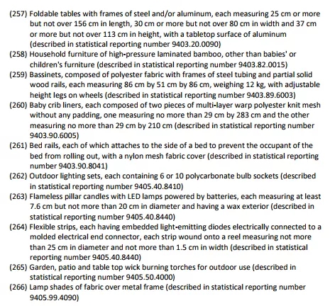 ![]() 本次排除清单延长期是针对2000亿加征关税清单自2018年9月24日开征之日起截止目前所有针对List 3清单共进行过14个批次排除的延长公告,此次未获得延长有效期的包括441个税号下727个品项的商品,于2020年8月7日到期后,被移出排除清单。即2018年9月24日至2020年8月7日期间,这些商品可免加征关税,但从2020年8月7日起,恢复额外加征关税25%。(名单见列表2) 此次获得有效期延长至2020年12月31日的共涉及190个税号266个品项商品。具体如下: