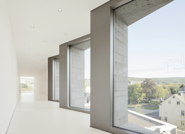 图注 无缝连接的弹性地板将这个极简展馆的走廊设计表达得更完美。