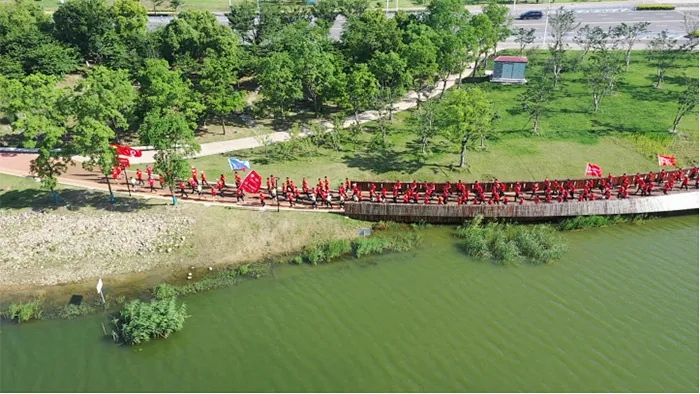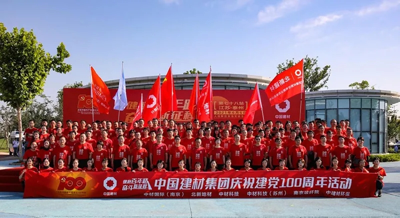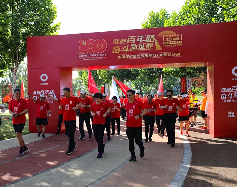 6月5日,中国建材集团“健跑百年路 奋斗新征程”第78站活动在素有“儒风之盛、夙冠淮南”之名的江苏泰州成功举办。中国建材集团党委副书记、总经理曹江林,泰州市委常委、市政府常务副市长曹卫东,中国建材集团党委副书记、工会主席孙力实,中国建材股份副总裁、南方水泥党委书记、总裁肖家祥,中国建材股份党委副书记、工会主席傅金光,中国建材股份副总裁、中材科技党委书记、董事长薛忠民,南方水泥执行副总裁、上海南方党委书记、总裁林国荣,中材科技副总裁赵谦、党委副书记郭伟、纪委书记徐谦,中材国际副总裁、中材国际(南京)党委书记、董事长沈军,中国复材党委副书记、纪委书记何继秀,南京凯盛党委书记、董事长冯建华,泰州市政府相关领导出席活动。 本次活动由中材科技、中材科技苏州有限和北新地板共同承办,南京玻纤院、中材国际(南京)、中建材环保研究院江苏公司和北新建材华东公司7家公司共计170余名党员职工参加。