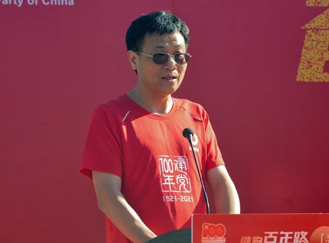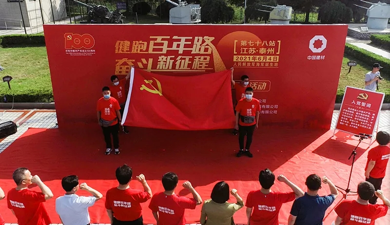 薛忠民主持并致辞。他讲到,“健跑百年路 奋斗新征程”活动是我们中国建材人为庆祝建党100周年而开展的一项重要的党史学习教育活动,旨在以100天、100场系列活动为载体,引导广大党员职工重温党的百年光辉历史,用党的奋斗历程和伟大成就鼓舞斗志、明确方向,用党的光荣传统和优良作风坚定信念、凝聚力量,用党的实践创造和历史经验启迪智慧、砥砺品格,切实激发广大党员干部爱党爱国热情,以良好的精神风貌和优异的业绩迎接建党100 周年。本次活动站点设置在泰州,有着重要意义。泰州州建南唐,文昌北宋,人文荟萃、名贤辈出,1949年4月23日,中国人民解放军的第一支海军——华东海军在这里宣告成立。1989年2月17日,中央军委正式决定:泰州白马庙为中国人民解放军海军诞生地。值得我们自豪的是,新中国成立以来,伴随人民海军以及国家军事力量不断发展壮大的过程,集团相关企业及科研院所为国防事业都作出了积极的贡献,体现了中央企业胸怀“国之大者”的担当与责任。