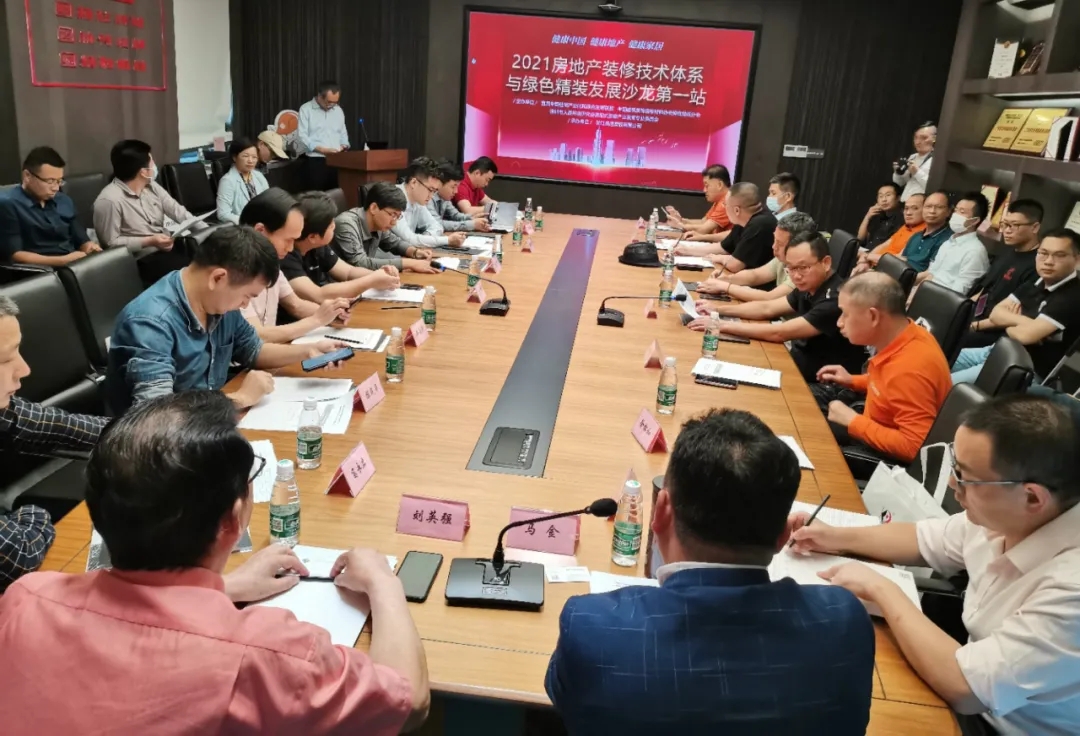 2021年4月18日下午,由中国建筑装饰装修材料协会弹性地板分会、宜居中国住宅产业化和绿色发展联盟、深圳市人居环境研究会装配式装修产业发展专业委员会主办,浙江晶通塑胶有限公司承办,共同开展的“2021房地产装修技术体系与绿色精装发展沙龙第一站”在广东深圳隆重召开! 此次会议携深圳市人居、深圳远大住宅、新城控股、中交地产、深圳宝能集团、融创集团、深圳市恒晟装饰等数二十余家房地产企业现场展开交流和沟通,促使双方形成战略合作共识、达成双方建立紧密对接的关系,为产品入采平台做好铺垫作用。