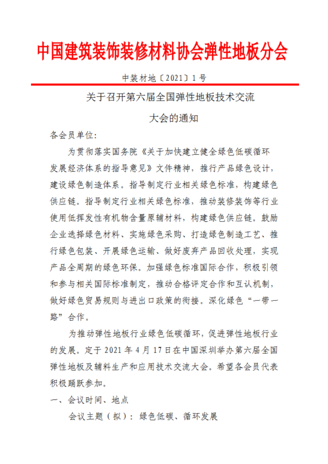 协会通知:关于召开第六届全国弹性地板技术交流大会的通知!
