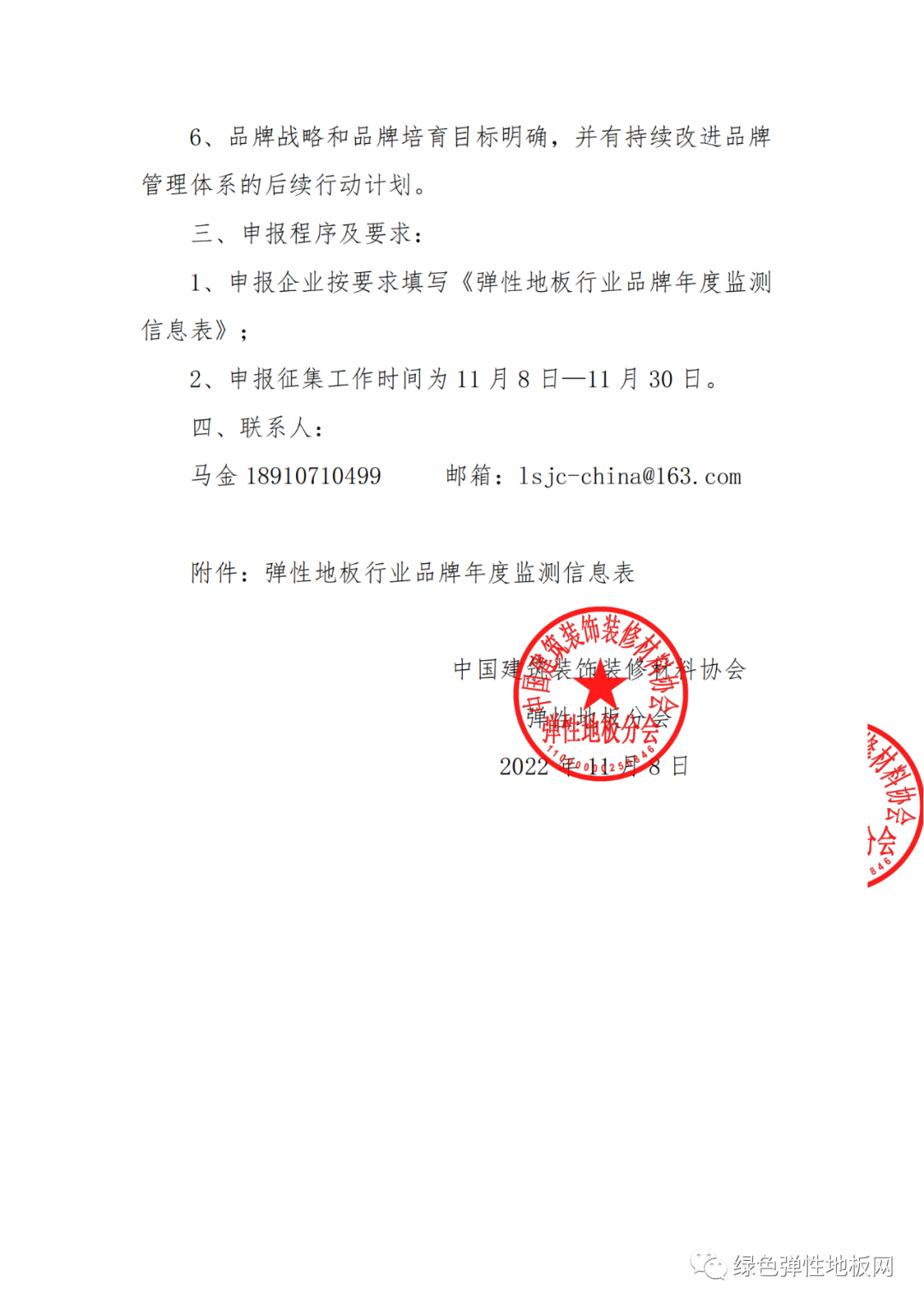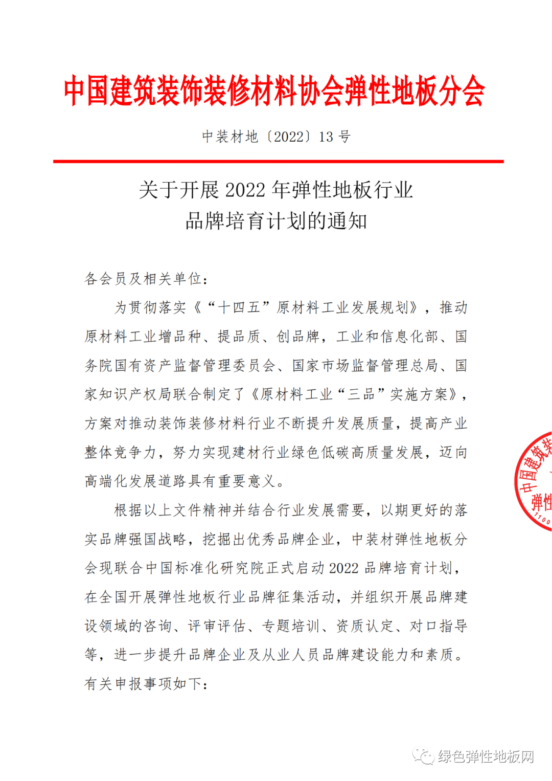 协会动态:关于开展2022年弹性地板行业品牌培育计划的通知!