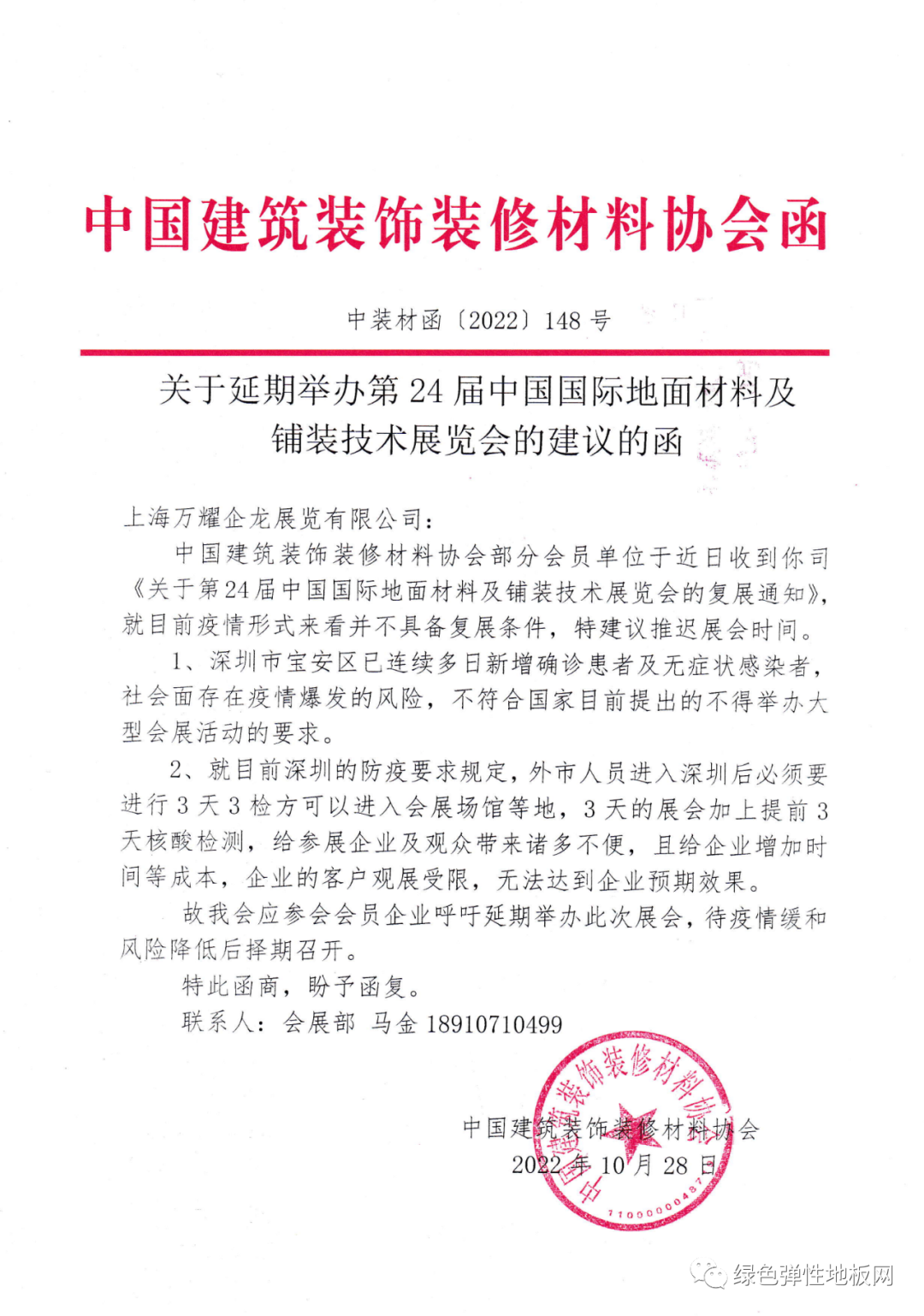 关于延期举办第24届中国国际地面材料及铺装技术展览会的建议的函