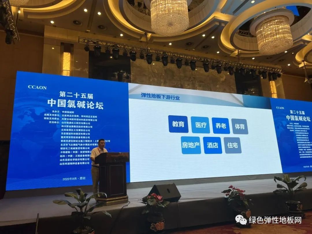 中国建筑装饰装修材料协会弹性地板分会秘书长马金应邀于8月18日出席了在云南昆明召开的第25届中国氯碱论坛,并做了题为弹性地板行业发展趋势的主题演讲。本次氯碱论坛旨在分析研判我国宏观经济趋势和能源格局变化,如何发展专用化产品和新型材料,拓宽氯碱产品的应用领域。