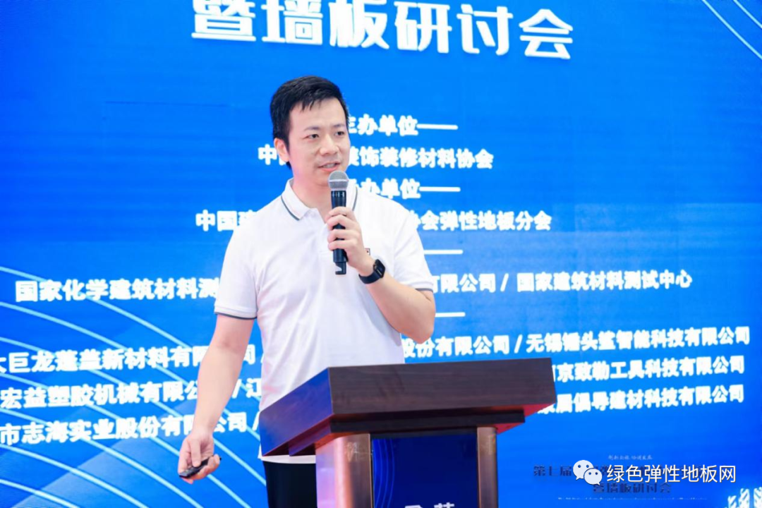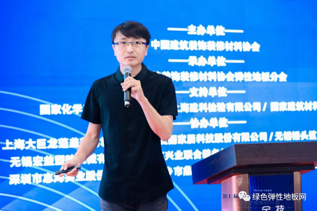 绿水青山就是金山银山,在国家大力引导绿色生产和绿色消费的趋势下,绿色建材产品市场认可度不断扩大,市场份额和质量效益大福提升。国建联信认证中心的认证经理孙双权做了《弹性地板绿色建材产品认证评价标准解读》的主题演讲。