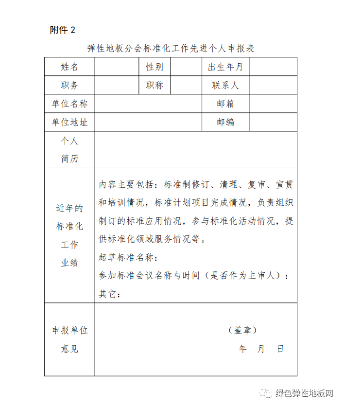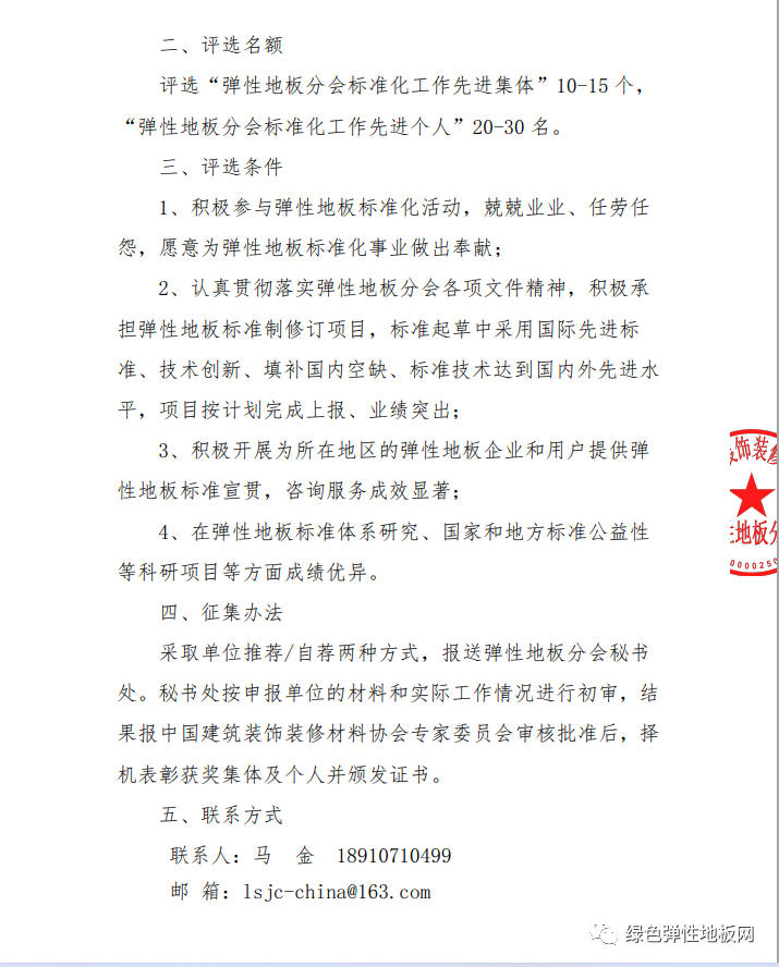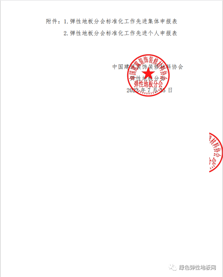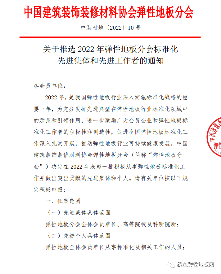 关于推选2022年弹性地板分会标准化先进集体和先进工作者的通知