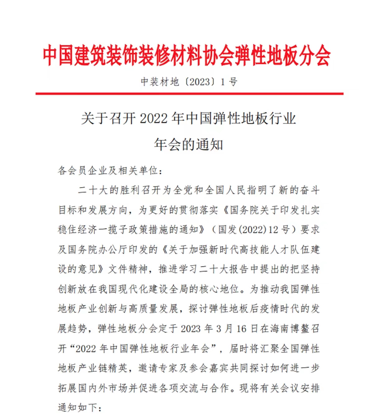 关于召开2022年中国弹性地板行业年会的通知