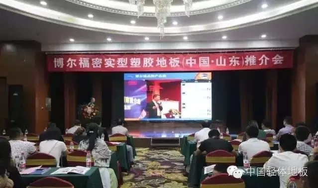 博尔福密实型产品现场展示,卓越的产品品质赢得山东塑胶地板行业内朋友们的肯定;各优秀经