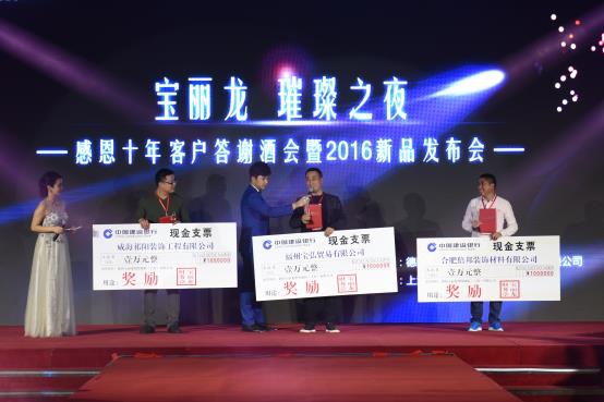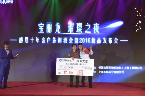 2016年3月21日晚,宝丽龙璀璨之夜 – 感恩十周年客户答谢酒会暨2016新品发布会在上海市闵行区富建酒店隆重举办。 本次活动由德国宝丽龙塑胶地板(上海)有限公司主办。公司董事长纪薇,朱总经理等公司领导及相关负责人出席了本次活动。 共同参与本次盛会的还有应邀出席本次晚宴的全国精英经销商,行业精英,以及宝丽龙的全体员工。 晚宴上,德国宝丽龙塑胶地板(上海)有限公司产品部主任刘林峰先生对宝丽龙品牌全线产品做了细致说明,并介绍了公司全新引进的欧洲一体化生产线和公司自制研发的洁盾涂层,2016年宝丽龙的全新产品将继续在行业领跑并确立优势。 ![]() 德国宝丽龙塑胶地板(上海)有限公司产品部主任刘林峰 德国宝丽龙塑胶地板(上海)有限公司公司总经理朱建强先生为来宾总结了2015宝丽龙公司取得的辉煌成果并对2016年的市场做出审时度势的精彩解读和展望。 ![]() 德国宝丽龙塑胶地板(上海)有限公司公司总经理朱建强 德国宝丽龙塑胶地板(上海)有限公司董事长纪薇女士,对全体经销商伙伴和公司同仁在过去一年取得的成绩做出肯定,鼓励大家在今后的合作发展中,明确各自的分工,将大家各自的优势发挥到最大。宝丽龙品牌将用最好的产品和服务支持大家。纪薇董事长高举酒杯,全场气氛达到高潮。 ![]() 德国宝丽龙塑胶地板(上海)有限公司董事长 纪薇 各代理商上台接受嘉奖,分享和宝丽龙的共同经历和对宝丽龙未来的祝福。 ![]() 优秀经销商奖获奖者合影 ![]() 杰出营销奖获奖者合影 ![]() 刘林峰主任颁发杰出营销奖 ![]() 15年销量季军上台领奖 ![]() 总经理朱建强为15年销量亚军颁奖 ![]() 董事长纪微为15年销量冠军颁奖 活动精彩纷呈,演员技惊四座,颁奖激动人心,互动游戏热闹全场。美酒配上佳肴,台上台下欢笑不断。 ![]() ![]() 宝丽龙十年历程,一步一个脚印,每一步都是各位伙伴一同努力的见证。十年树木,百年树人,宝丽龙未来的路还很长,公司的蓬勃发展离不开每位合作伙伴的共同进取。今日我们真挚感恩,许诺明日再攀高峰。 璀璨之夜属于宝丽龙,更属于广大经销商伙伴们,再次感谢各位今日的莅临。 (责任编辑:中装材弹性地板分会) |