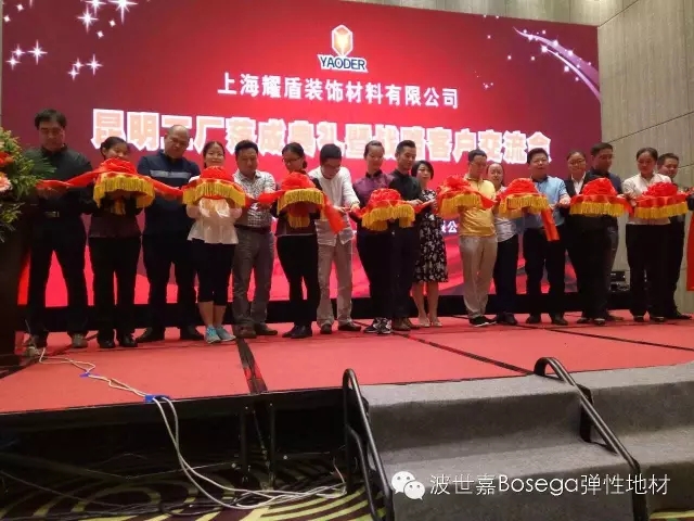 晚上18点30分,工厂落成剪彩仪式正式开始。首先由中国建筑装饰装修材料协会弹性地板分会秘书长——马金先生致辞