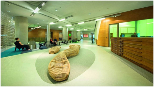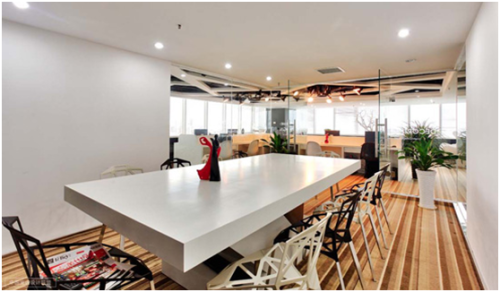 会议室也可以时尚化吗?设计师们对此有着各种各样的战略,但是有一个宗旨是相同的:既要时髦,也要沉静,既要色彩,也要视觉上的和谐与舒适。 时尚、色彩,都可以从地板开始。作为空间里面积最大的装饰元素,地面的创作特别重要。在地面上挥洒时尚的元素,无疑是缔造时尚会议室的最佳战略。拼色地板,尤其是可以拼色的弹性地板,成为完成这个战略的有力工具,除了能创造丰富的视觉效果,还能凭借其静音的特殊功能,构筑起安静的工作环境。