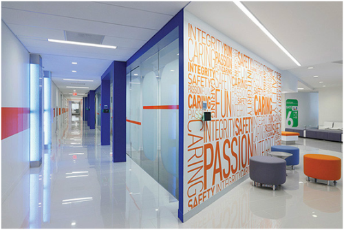当弹性地板浸染了丰富的色彩,拼铺出不同的时尚图案,其将成为空间里最闪亮的明星,即便没有家具,也能显示出会议室环境的高级品位。一方面时髦而醒目,一方面含蓄而包容,正是拼色地板最大的特性,让地面上的创作能够搭配任何风格的办公家具。其还担当着最有力的调和元素,将新与旧、现代与古典、暗淡与明亮和谐地融合在一起。