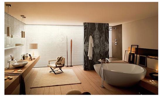 浴室的环境封闭、潮湿,要想在这里极尽风格地设计,是件不太容易的事情。不过这是在弹性地板出现之前。有了千变万化的弹性地板,一切风格的浴室都有可能实现。