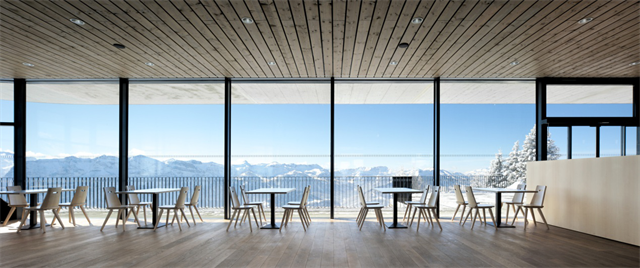 一杯敬山 一杯敬水 窗外的美景,盘中的美食,眼前心悦的人。这种时刻之于选择观光餐厅的人,大概是当日最佳。比起实体墙上的风景画,用一大片玻璃观光墙将窗外如画的美景“邀请”入室,观光墙与弹性地板的结合使得室内与室外没有了明显的界限,这种用餐体验就仿佛置身于如画的景色中,亲临自然的魅力。 弹性地板优势: 环保无毒的特性,让餐厅空间更加具有自然的气息,顾客的每一次呼吸更加舒适亲切;加之弹性地板防水防潮,无论餐厅的窗外是何样的气候环境,室内的地板都能完美适应,不受影响。