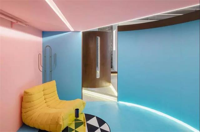 碧水湖蓝 静谧早春 早春二月大地回暖,清晓妆成,梅花绽放,冰河初开,水光潋滟。湖蓝色弹性地板倾心打造静谧、清凉的早春景致,地板与半面墙壁融为一体,且和水粉色屋顶及墙壁形成强烈对比,空间色调的对称反差,将室内装饰出碧水蓝天、春意浅浅的清亮美感。 经典米黄 冷暖适宜