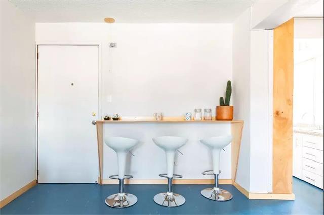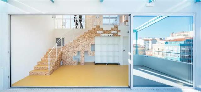 连扇落地玻璃带来的充足采光让室内光线明朗、视野清晰。无论白天还是夜晚,在这样的空间静坐冥思或与好友畅聊,均能感受到风和日暖、杨柳轻烟的春景。橙黄色地板的明丽映入眼帘,让心与心的交流尽情而欢畅。弹性地板的色牢度很高,无论任何色彩的地板,且无论使用在任何场所,通常物理条件下,均能保证色度始终如一。即便久经阳光照射,也不会发生褪色、掉色现象。