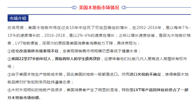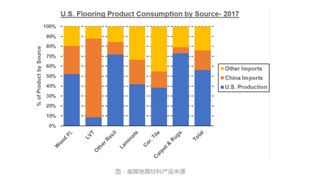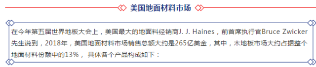 ![]() 美国是世界上最大的消费品市场之一。2018年,美国地面材料市场销售总额约达265亿美金,是中国地面材料生产企业的第一大出口目的地。