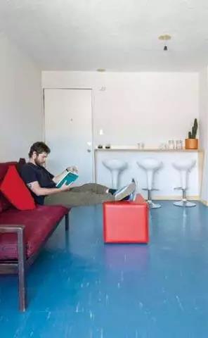 蓝色的弹性地板带来海洋般清新的气息,搭配现代简约风家具,让居家者足不出户就能享受海边度假般的休闲时光。