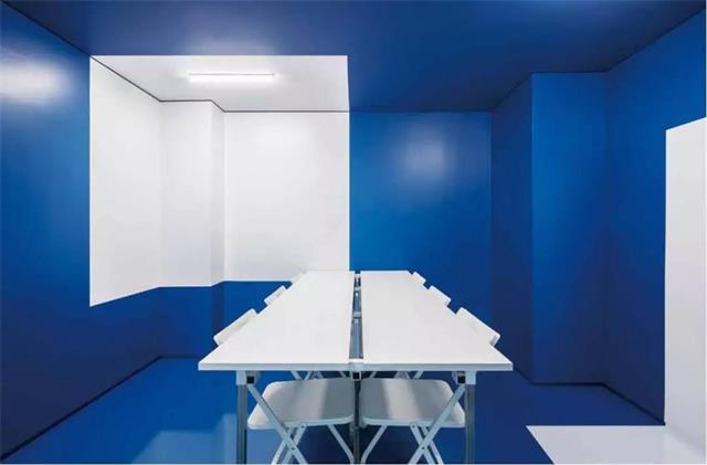 图. 蓝色地板与黄色家具形成强烈的色彩对比,空间更显活泼