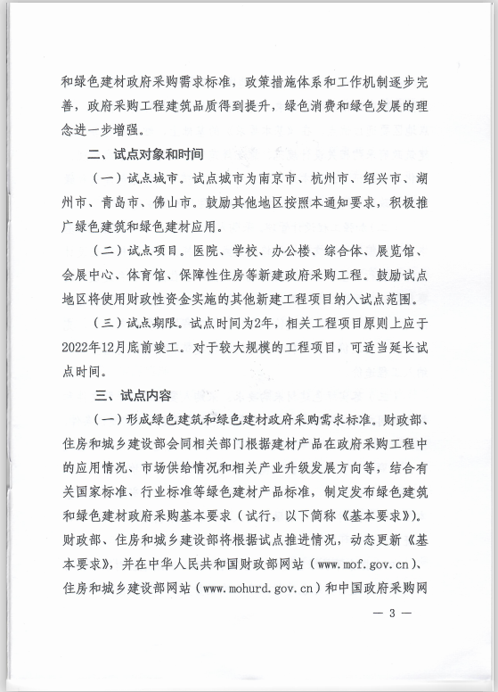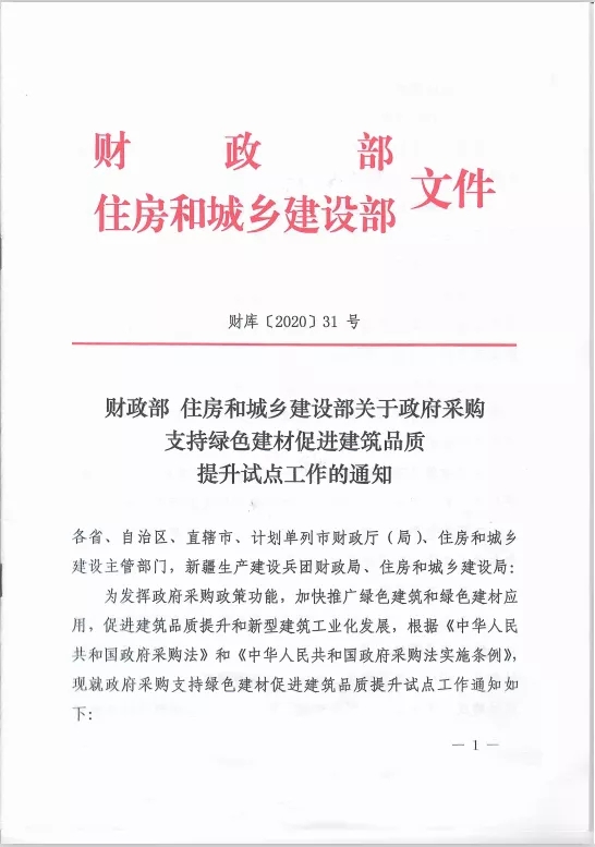 财政部住建部支持绿色建材促进建筑品质提升试点工作的通知