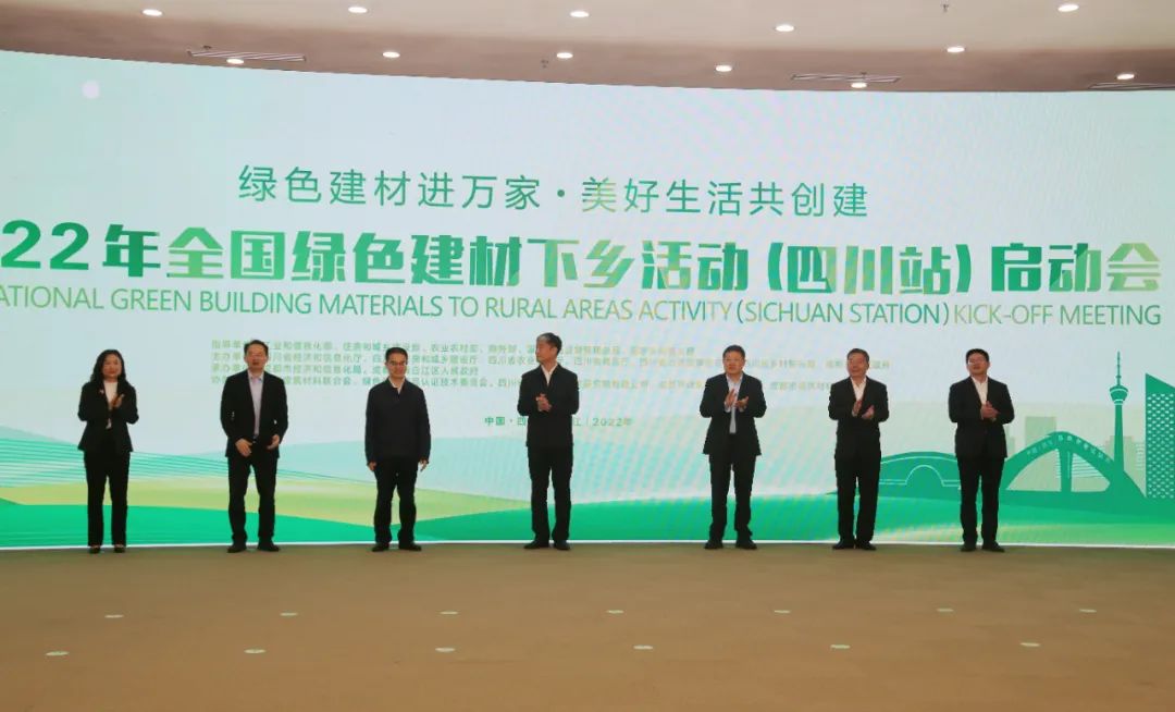 10月28日,以“绿色建材进万家 美好生活共创建”为主题的全国绿色建材下乡活动(四川站)启动会在成都青白江区举行,这是党的二十大召开后全国首场绿色建材下乡活动,四川也成为继浙江、山东、天津后的第四个全国绿色建材下乡活动站点。
