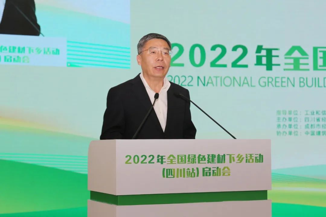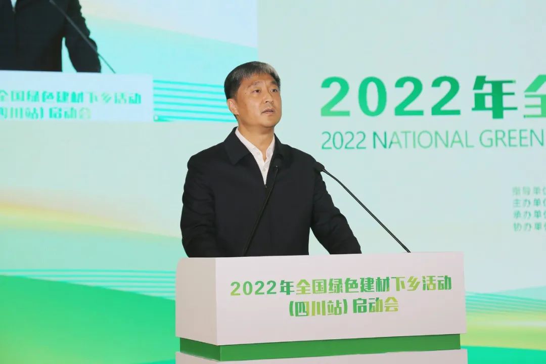 工业和信息化部原材料工业司副司长邢涛,中国建筑材料联合会党委副书记、常务副会长、全国绿色建材下乡活动推进组组长陈国庆,四川省人民政府副秘书长刘全胜,成都市人民政府副秘书长张涛出席会议并讲话。中国建筑材料联合会总经济师、副秘书长孙星寿,绿色建材产品认证技术委员会常务秘书长牛凯征等绿色建材下乡活动推进组成员单位负责人;四川省经济和信息化厅党组书记、厅长翟刚以及来自省住房和城乡建设厅、省市场监督管理局、省乡村振兴局、省商务厅等相关部门的负责人;四川省部分重点绿色建材生产企业、相关行业协会、金融机构、咨询服务机构、市场流通企业及媒体代表参加了启动会。青白江区政府副区长沈伟主持会议。